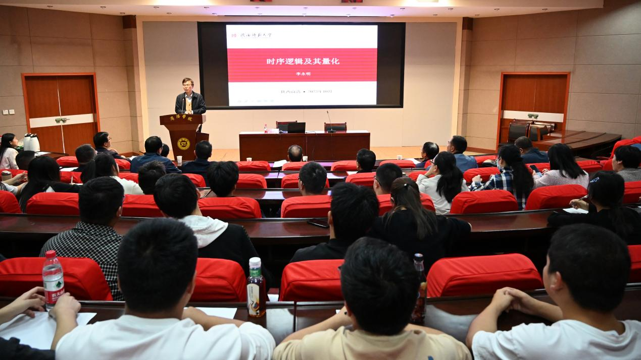 10月13日,数计学院邀请bat365客座教授、陕西师范大学博士生导师李永明教授来校作题为《时序逻辑及其量化》的学术报告。学院全体教师及80余名学生代表参加了报告会。报告会由数计学院副院长李会荣主持。