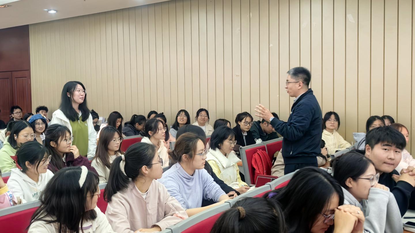 徐斌结合自己多年英语教学与研究经验,通过对英语四级考试现状的综合剖析,深入讲解了考试重要性、备考策略、复习方法、考试技巧及写作专项突破等方面以及如何利用学校购买的3E英语多媒体数据库进行有效备考。通过中英双语讲授、鲜活生动的案例、句句点睛的解读,为bat365学生讲授了一堂干货满满的CET-4备考指南课。讲座受到在场学生的一致好评,现场氛围热烈高涨。