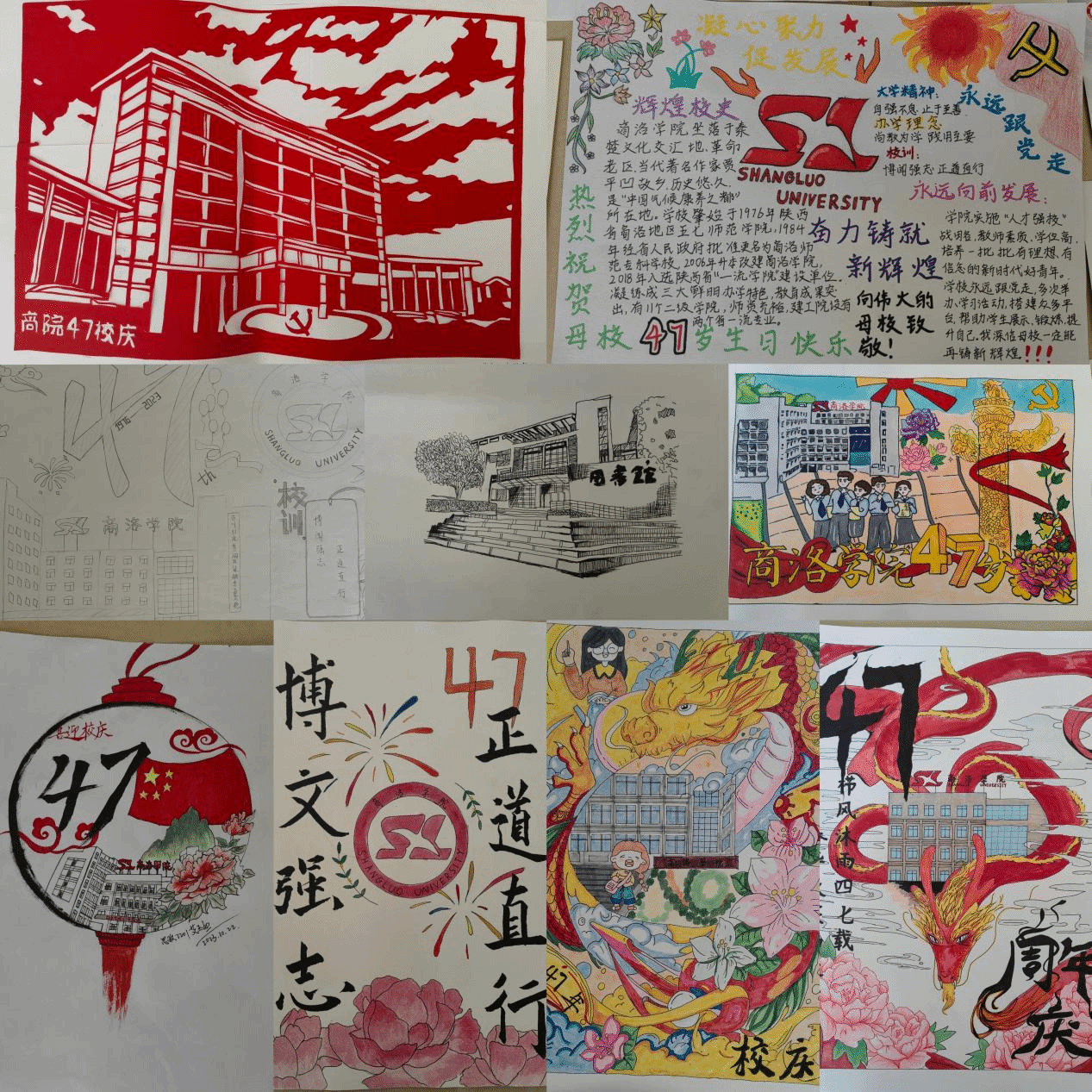 活动期间,各二级学院还通过主题班会及展板等形式为母校庆生。截止发稿前,国内合作与校友工作处已收到校内师生书法、绘画、摄影等作品一百余件。