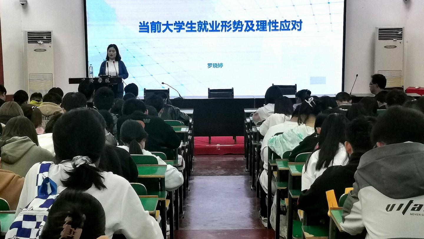 罗晓婷通过全面解读当前中国经济形势,综合分析了疫情防控政策调整后大学生所面临的就业形势,并结合自己多年就业指导经验,从大学生如何理性应对就业方面深入展开讲解。她鼓励大三、大四同学要加紧准备、主动迎战,告诫大一、大二的同学要早打基础、增强本领,为未来就业做充足准备。在答疑环节,同学们纷纷就个人职业规划、就业选择以及简历投递等问题进行咨询,罗晓婷一一给予了耐心细致的解答。