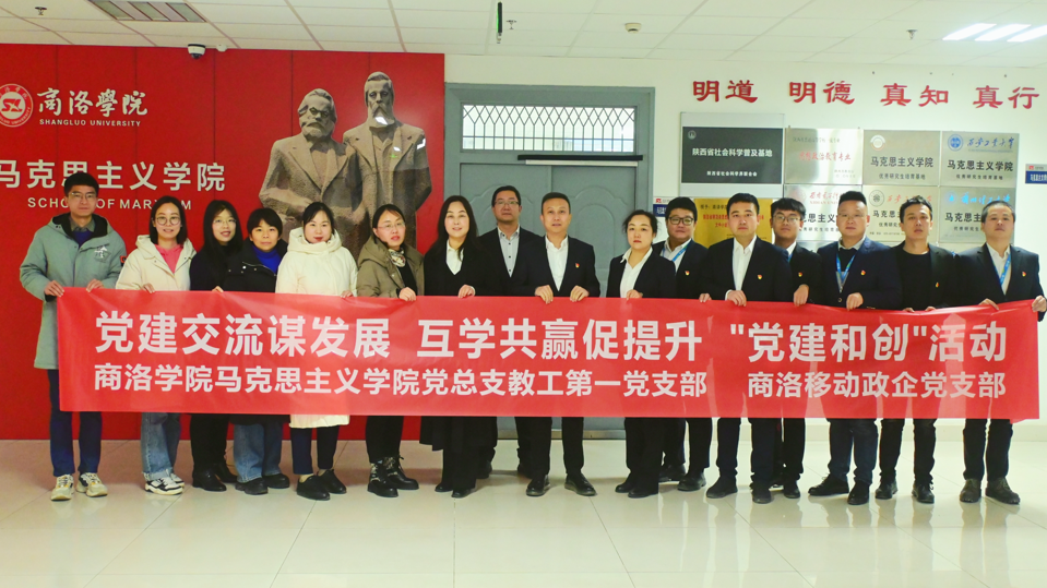 为深入学习贯彻党的二十大精神和习近平总书记系列重要讲话精神,充分发挥基层党支部的主体作用,激发党员活力,12月13日下午,马克思主义学院党总支教工第一党支部与商洛移动政企党支部联合开展“党建和创”共建活动。双方支部全体党员参加活动。