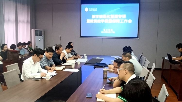 为进一步夯实教育教学工作中心地位,全面规范教育教学过程管理,建立教育教学常态化检查机制,构建高水平人才培养体系,6月17日,艺术学院召开教学规范化管理专项暨教育教学质量保障工作会,研究审核评估反馈整改相关工作及期末教学管理、服务地方等工作。艺术学院院长李世鹏主持会议。院领导黄新春、唐曌堃、刘志华、杨静及全体教职工参加会议。