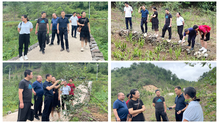 在商南县林特产业发展中心主任段俊平和基地负责人孙勇陪同下,团队一行深入中药材种植基地,实地考察了连翘、白芨、黄精等中药材的生长和栽培情况,了解了中药材种植规模、收成情况、销售渠道、市场行情等方面的情况。在交流中,针对基地负责人提出的具体发展困境,团队成员耐心倾听,并现场提出解决办法以供参考借鉴。