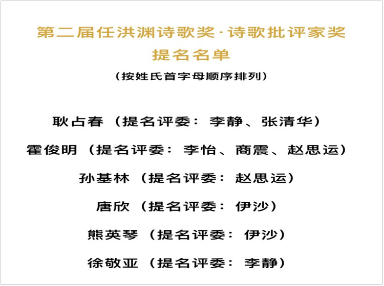 据悉,“任洪渊诗歌奖”为双年奖,共设有“诗人奖”“诗歌评论家奖”“青年诗人奖”和“邛崃特别奖”四个奖项,由评委会对两年内全国公开发表、出版的作品进行公开、公正、公平的评选。本届“任洪渊诗歌奖”评奖工作自今年6月份开始启动,“侧重于将奖项发给在人文精神向度和语言美学向度有突出表现的诗人和诗歌批评家”。