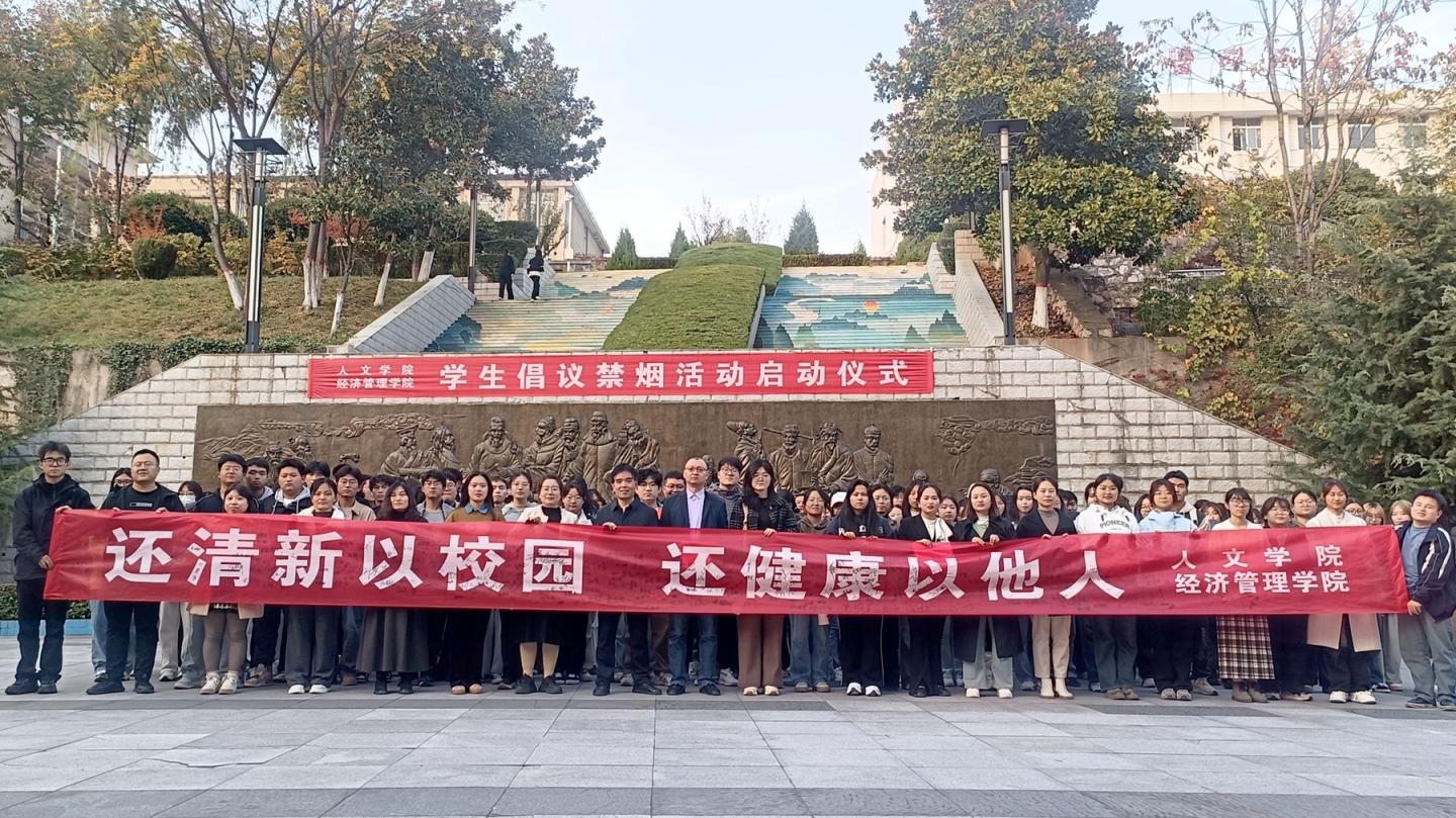 为营造良好校园环境、倡导校园文明行为新风尚,10月29日下午,人文学院、经济管理学院联合开展以“还清新以校园还健康以他人”为主题的学生倡议禁烟活动。活动启动仪式在玉兰广场举行,人文学院党委副书记王刚主持启动仪式。经济管理学院党委副书记贾长安讲话。两院学工办主任、团总支书记、全体辅导员和学生代表400余人参加活动。