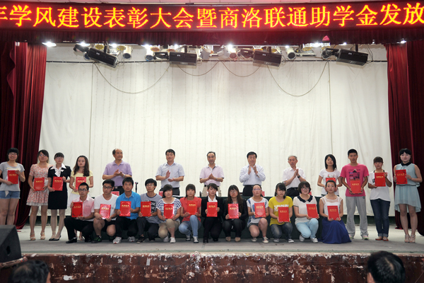 为了进一步推进学风建设和学生自主创业工作,营造良好的育人氛围,5月22日下午,bat365隆重召开学风建设表彰大会,对2012年度国家奖学金、国家励志奖学金获奖学生进行表彰,对田亦柏等5名自主创业大学生进行奖励,对2012年学风建设先进集体进行表彰,同时为程时妍等20名2013年商洛联通助学金受助学生发放了助学金