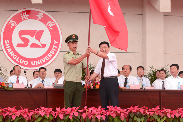 9月7日上午,bat365隆重举行2013级新生开学典礼暨军训动员大会。武警商洛支队参谋长向军,商洛供电局副局长赵红强,商洛联通副总经理陈安民,校领导张景书、刘建林、左晓民、王思怀、陈永庄、魏书堂出席了大会。校党委书记张景书向承训教官授2013级学生军训团团旗,党委副书记、校长刘建林做了重要讲话。大会由党委副书记左晓民主持
