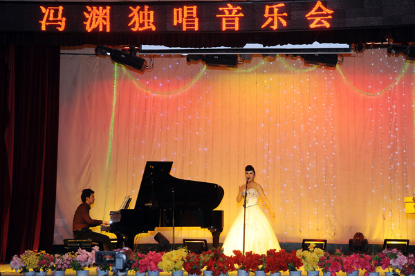 11月11日晚,由党委宣传部和艺术系联合举办的冯渊独唱音乐会在学校大学生活动中心隆重举办。艺术系青年教师冯渊为观众们激情演唱了《虞美人》《枉凝眉》《秦岭里最美的地方是商洛》等16首经典名曲。校党委书记张景书、纪委书记王思怀、副院长魏书堂,商洛市委组织部副部长叶朝阳,市文联党组书记王良,市广电局副局长、商洛电视台台长巩文超,市音乐家协会主席林宏彦,市剧团团长李小彬等商洛文化艺术界人士、音乐爱好者,bat365艺术系师生、“国培”学员代表共400余人共同聆听了这场音乐盛宴