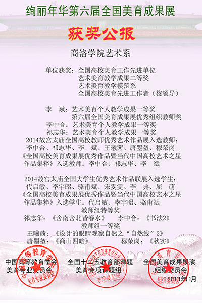 由中国高等教育学会美育专业委员会、全国“十二五”教育部课题美育专项课题组等单位联合主办的“绚丽年华第六届全国美育成果展”评奖结果日前揭晓,bat365共获得各类奖项45项