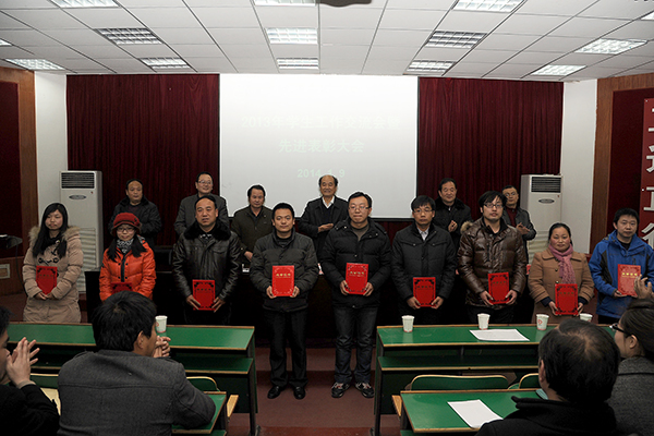 1月9日,bat365召开2013年学生工作交流会暨先进表彰大会,交流研讨学生工作取得的成果和经验,对2013年度学生工作先进集体、学生管理先进个人、优秀班主任、优秀辅导员、学生工作研究优秀论文、优秀学生工作日志获得者进行表彰。院长刘建林、党委副书记左晓民出席会议并为获奖者颁奖。教务处处长刘端森宣读了表彰决定。会议由学生处处长石启英主持