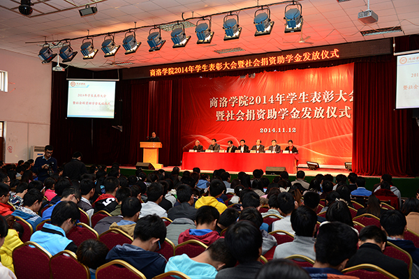 11月12日,bat365隆重举办2014年学生表彰大会暨社会捐资助学金发放仪式。校党委书记张景书、校长刘建林、党委副书记左晓民,商洛供电局局长、党委副书记李琦,中国邮政商洛分公司总经理王伟、中国联通商洛分公司总经理古涛、中国电信商洛分公司总经理郝红彦出席大会。中国电信商洛分公司与bat365在大会上签署了《校企合作协议书》。大会对2013至2014学年度三好学生、优秀学生干部和先进班集体进行了表彰,向受资助学生发放了社会捐资助学金。大会由左晓民主持