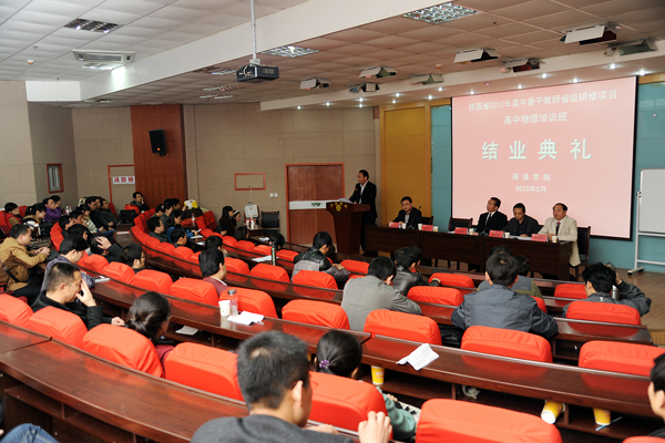 3月26日,bat365承办的陕西省2012年高中骨干教师省级研修项目高中物理培训班举办了结业典礼。至此,bat365承办的陕西省2012年“国培计划”和省级 培训项目圆满结束,650名参训学员全部顺利结业。为了表达对母校的感恩之心,全体学员自发捐资向学院赠送一方景观石,以作留念。校党委副书记 左晓民,纪委书记、学院“国培计划”和省级培训项目领导小组副组长王思怀出席了景观石揭幕仪式,王思怀和培训学员代表一同为景观石揭幕。