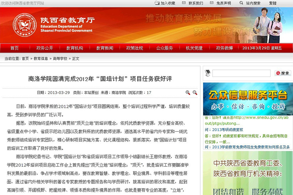 近日,陕西省教育厅官网、陕西省农村教师骨干培训网、陕西省中小学教师培训网等多家网站对bat3652012年度“国培计划”和省级培训项目先进经验进行了报道。文中称,bat3652012年“国培计划”和省级培训计划项目培训过程科学严谨、培训质量较高,受到参训学员的广泛认可