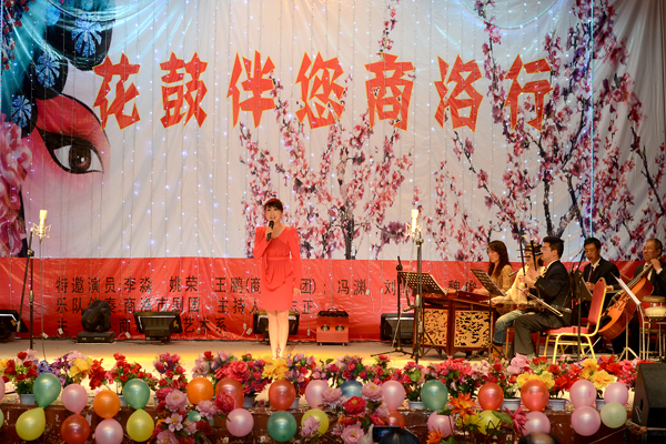 4月10日晚,由艺术系主办的“花鼓伴您商洛行” ---王红梅商洛花鼓教学改革实践成果汇报音乐会在大学生活动中心隆重举行。校领导左晓民、王思怀、刘建林、魏书堂,艺术系师生和校内外花鼓戏迷观看了表演。商洛电视台等地方媒体也现场进行了采访报道